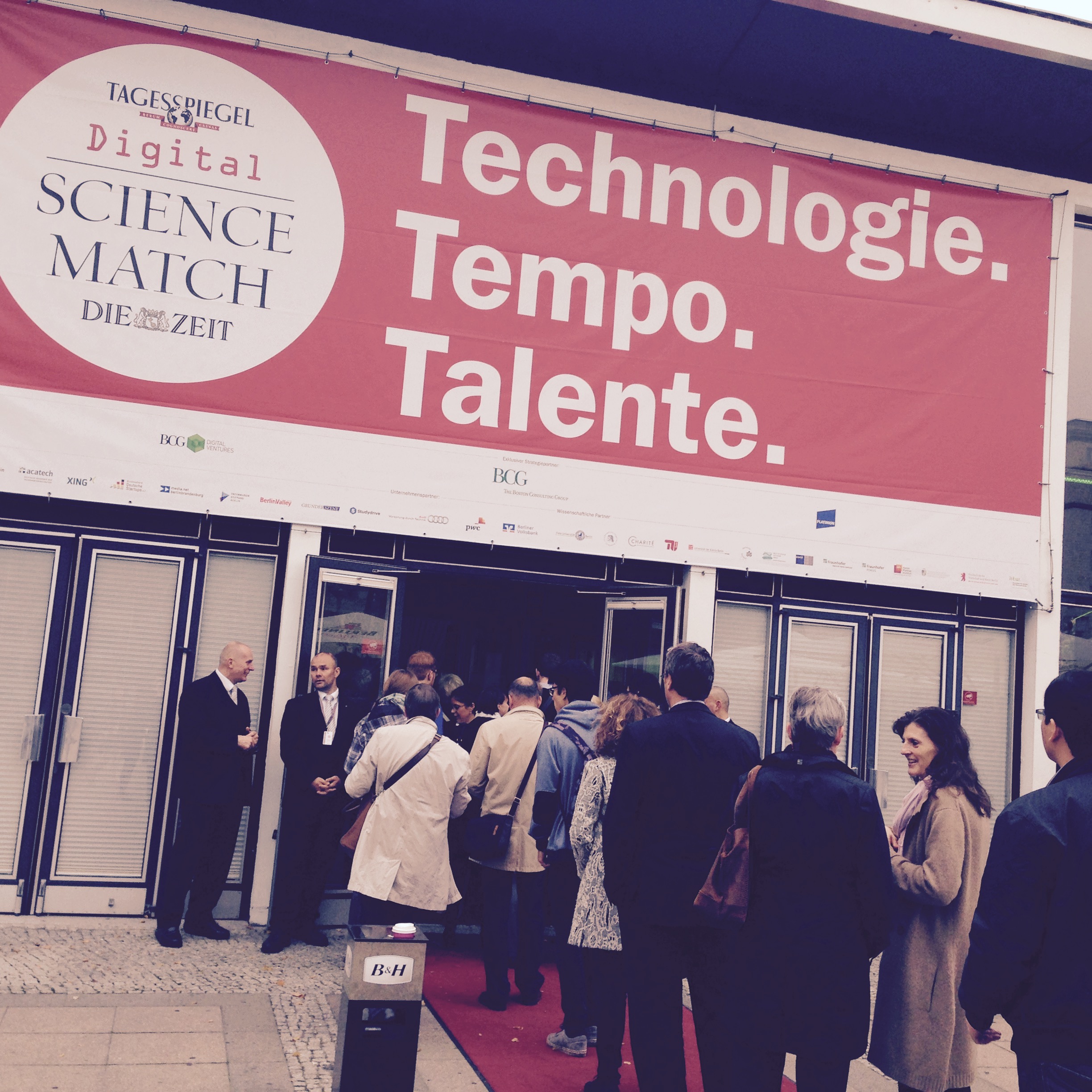 Am Eingang begrüßte großformatig die Kernaussage: Technologie, Tempo, Talente die Besucher.